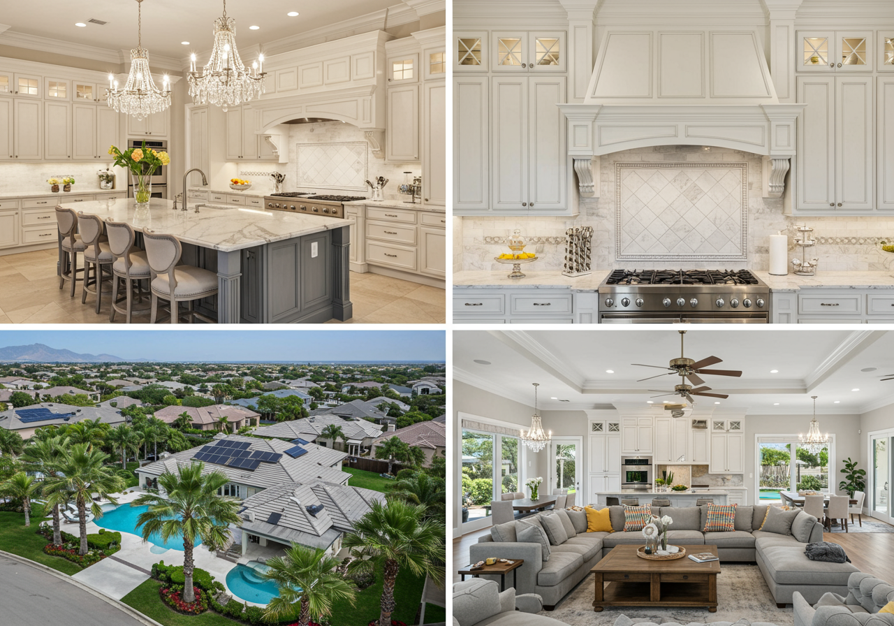 As you enter the secured gates of this estate, you notice the details of high-quality home, completely wrapped in chiseled quartz. The grand entryway greets you with travertine columns and exquisite double doors with a brilliant Piano finish.