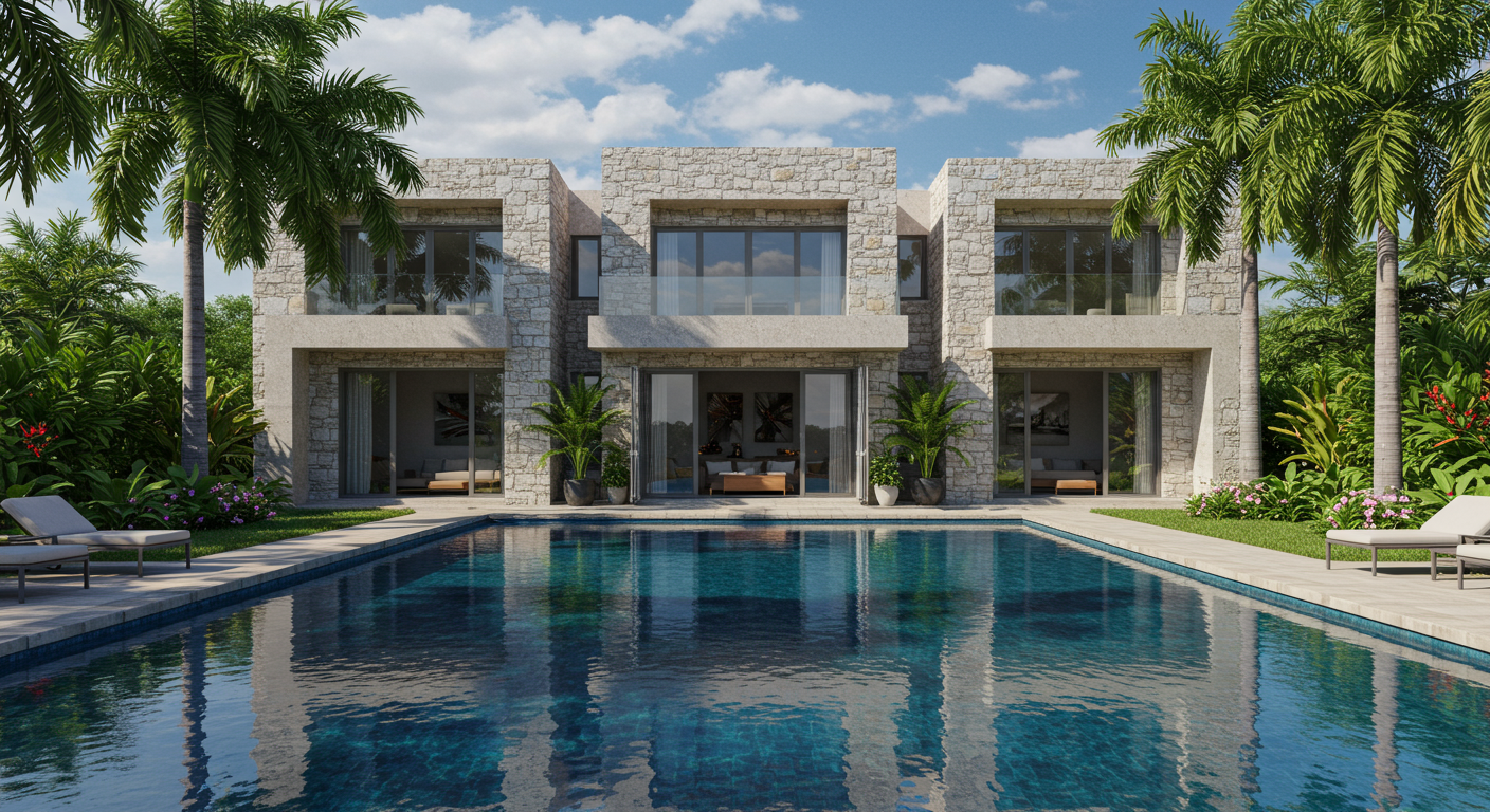 A home that has the look and feel of a luxury villa, surrounded by lush Hawaiian landscaping.