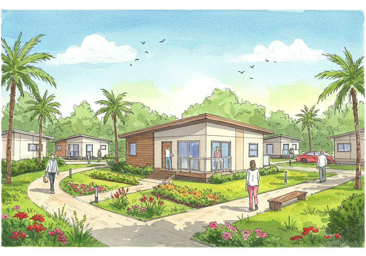 I became inspired in reading about the defining moment that led to an idea by Duane Kurisu and Lloyd Sueda — two visionaries, the owner of Hawaii Home Remodeling and the other, a talented architect, who simply were flying home to Oahu from the Big Island one day and saw from the air a piece of land that was 11.3 acres on the island. An idea came to them that it would be the perfect spot to build a community for families that would otherwise be homeless. In that moment, through serendipity, Kahauiki Village was born. Its location is between Nimitz Highway, Keehi Lagoon Beach Park, and Sand Island — making it ideal because of its proximity to public transportation and businesses, allowing working parents easy access to jobs.